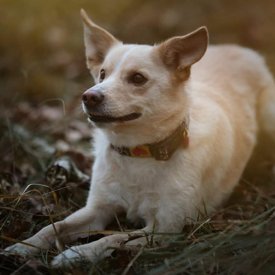 Niestety od samego początku były z nim dosyć spore problemy: nie dopuszczał nikogo do siebie i okazywał agresję. Musieliśmy zacząć z nim pracę i podjąć próbę przekonania go, że nic mu nie grozi. Aktualnie jest już o niebo lepiej, jednak nadal zdarza mu się pokazać zęby, gdy coś mu się nie spodoba. Gumiś wciąż potrzebuje pracy, ale to bardzo pojętny i karny czworonóg – za jedzenie zrobi wszystko, dlatego szukamy dla niego osoby, która ma doświadczenie w pracy z psami i po adopcji będzie współpracowała z naszym behawiorystą.