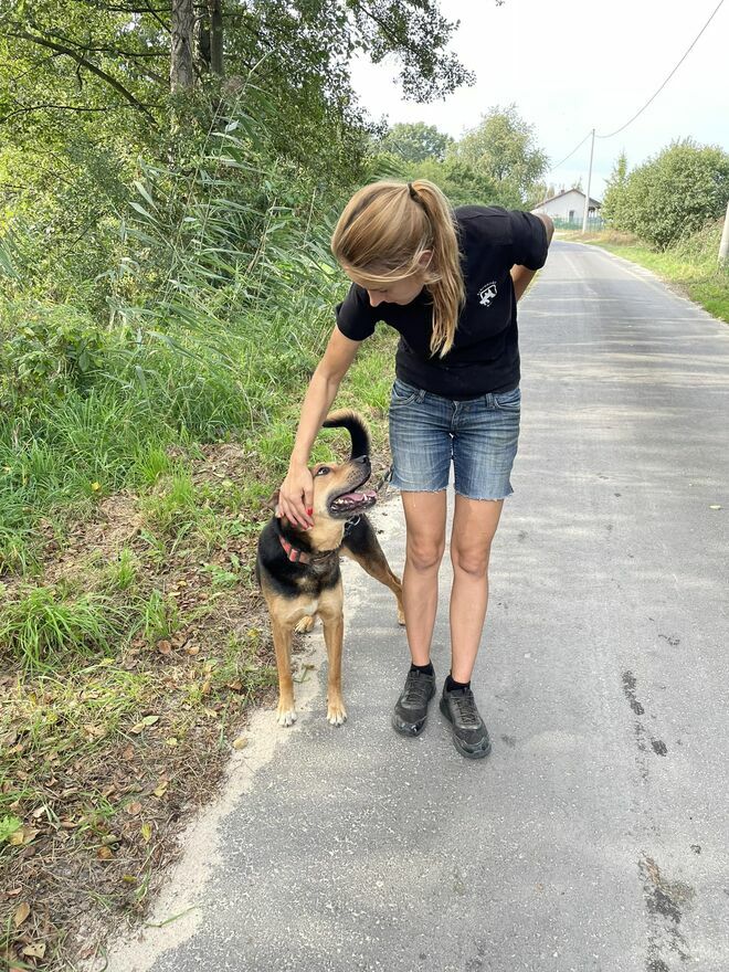 W Schronisku przeszedł dużą przemianę. Już nie przejawia agresji, słucha poleceń, szybko się uczy i reaguje na korekty podczas spaceru. Po wyjściu z kojca na początku ciągnie i węszy, ale potem skupia całą uwagę na opiekunie. Podstawia pyszczek do głaskania, bardzo lubi dotyk. To niesamowicie czuły i oddany pies…