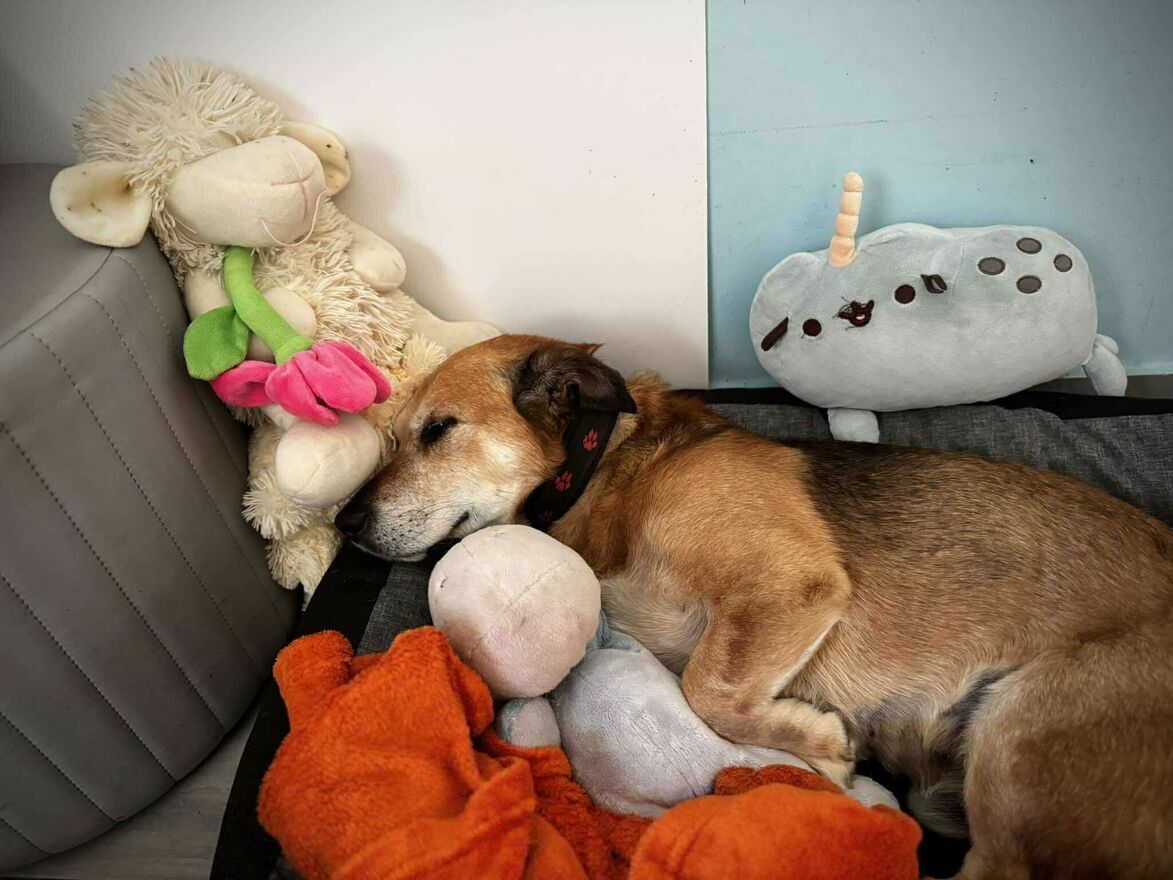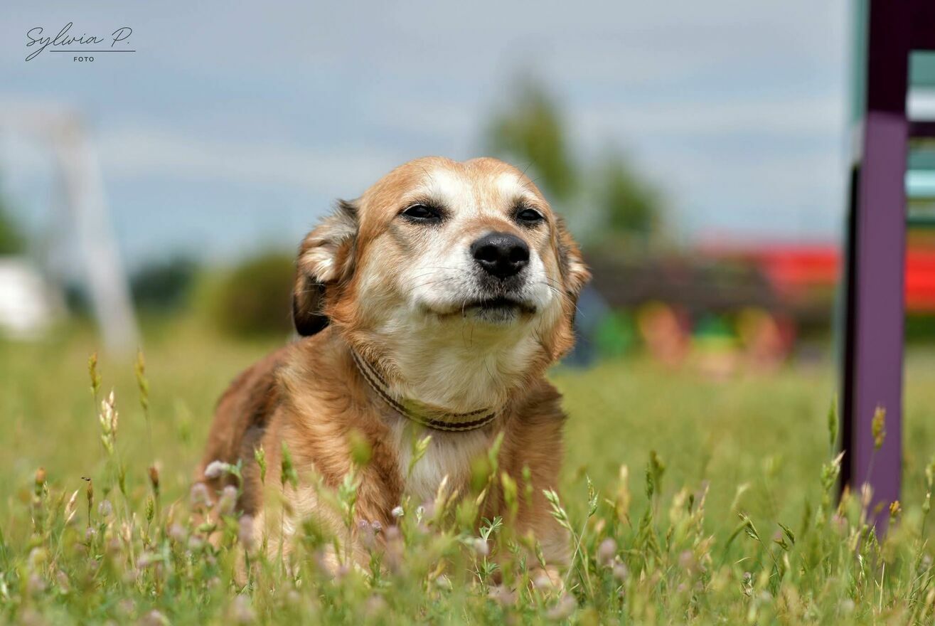 Z innymi psami bywa różnie, z jednymi się dogaduje, z innymi nie. Gdyby miał mieć psiego towarzysza – konieczne będzie zapoznanie na terenie schroniska.